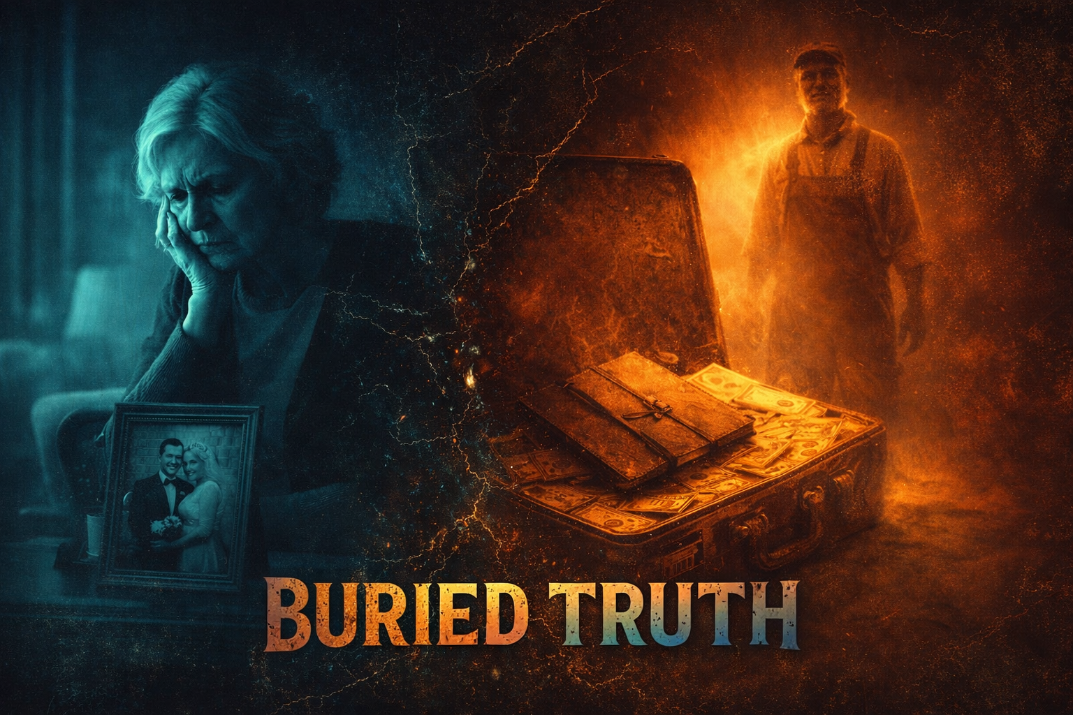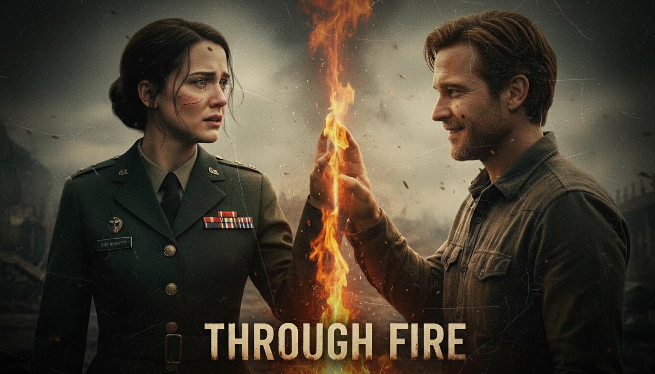 Two time periods dissolving through the center. Cold blue-teal left, warm amber right. The emotional journey lives in the transition.